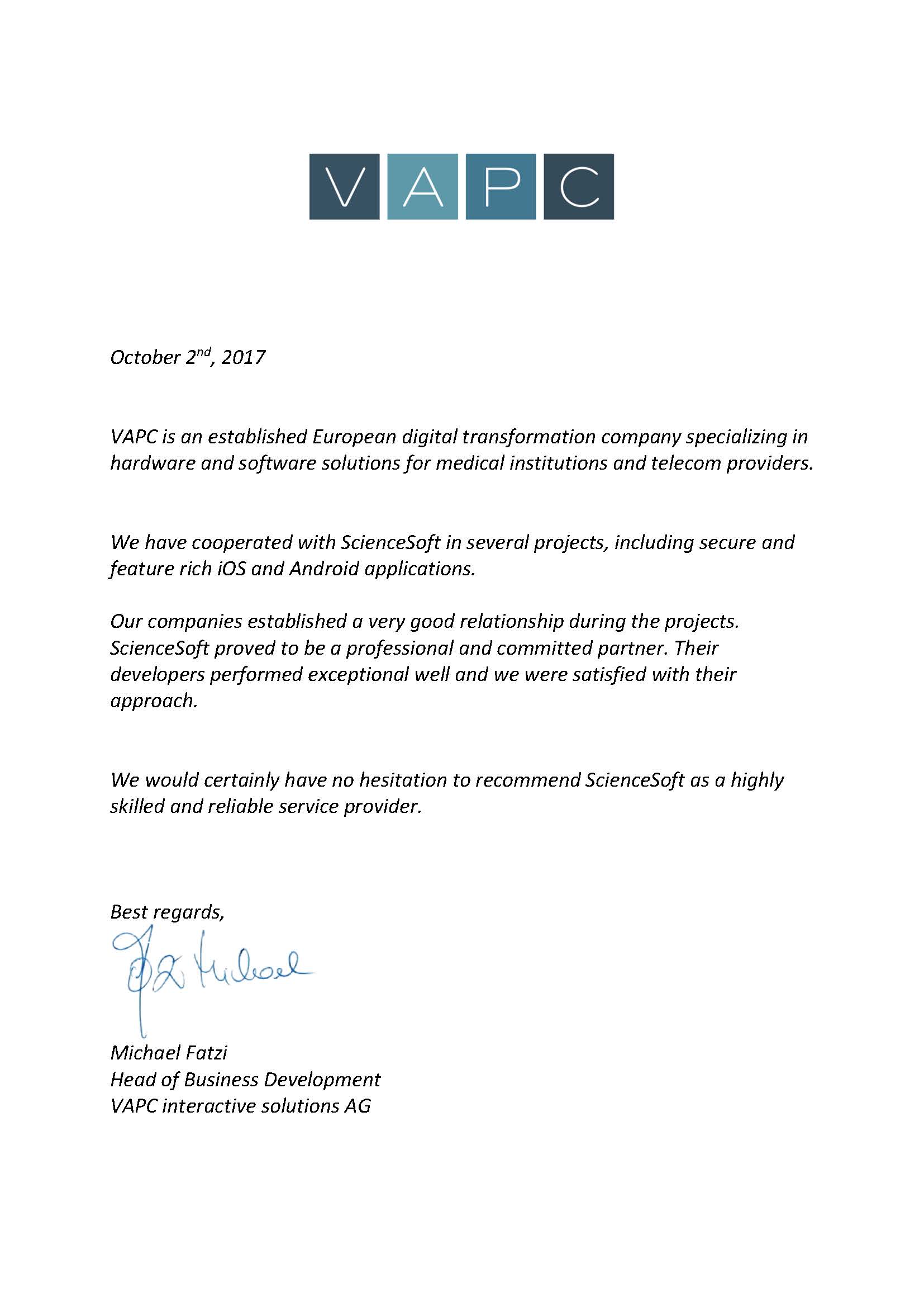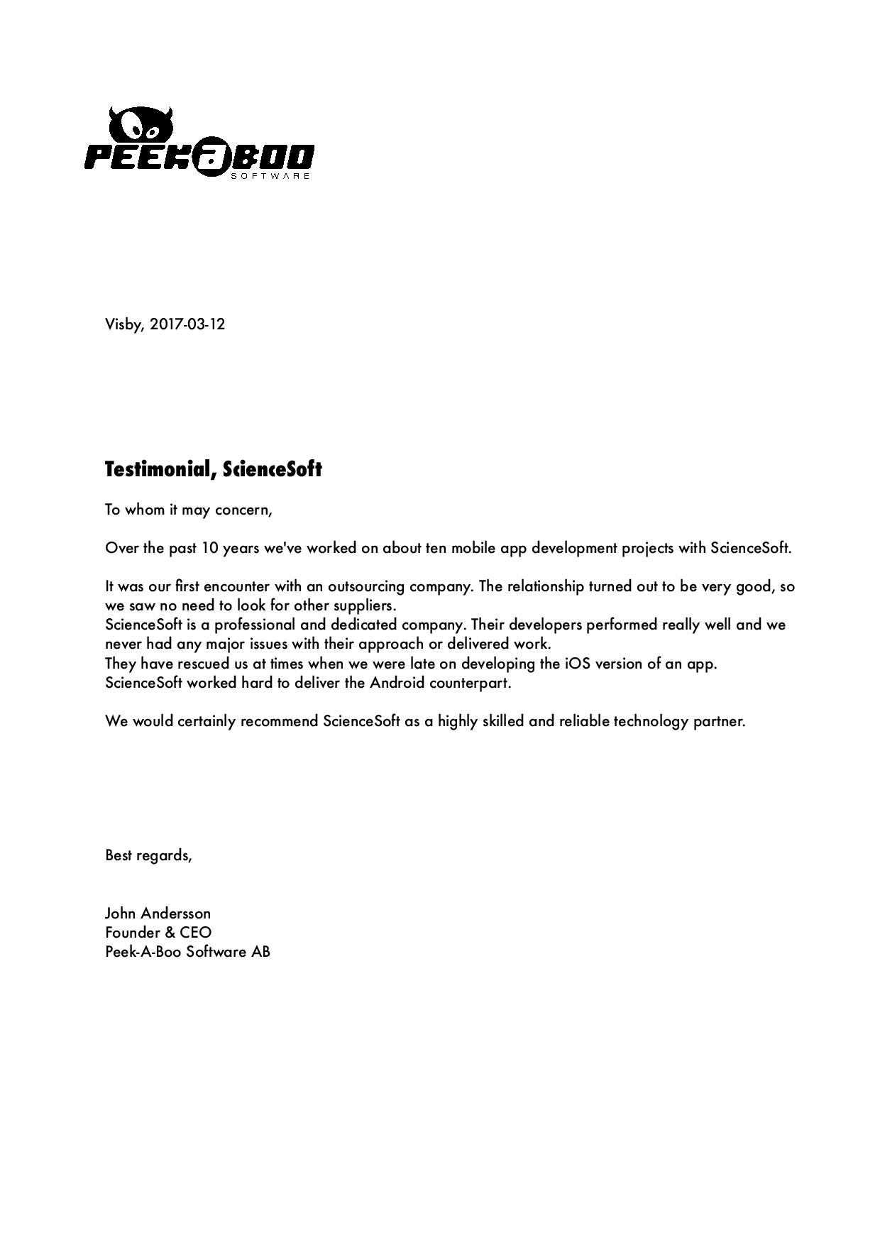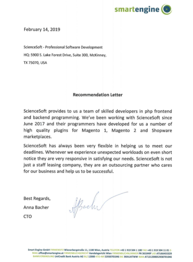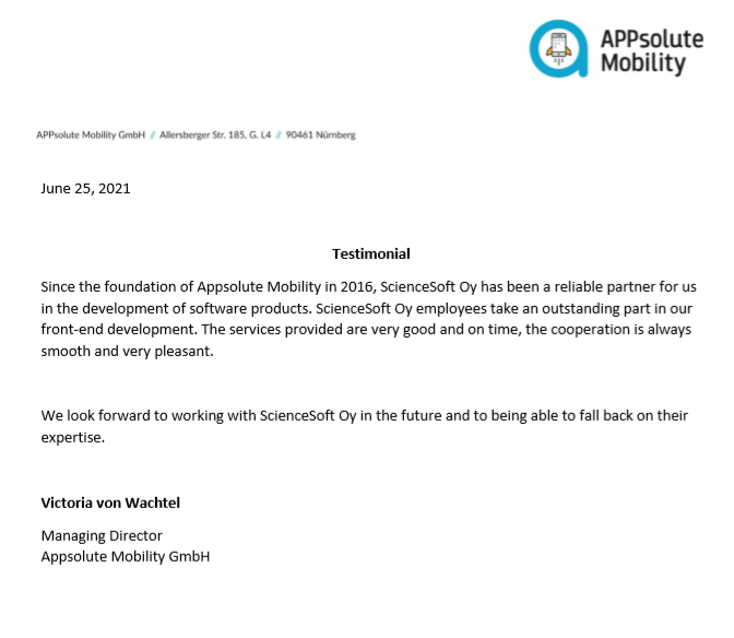 Wir empfehlen ScienceSoft als eine effiziente, zuverlässige und kommunikative Ressource für IT-Abteilungen , die externes Fachpersonal benötigen.