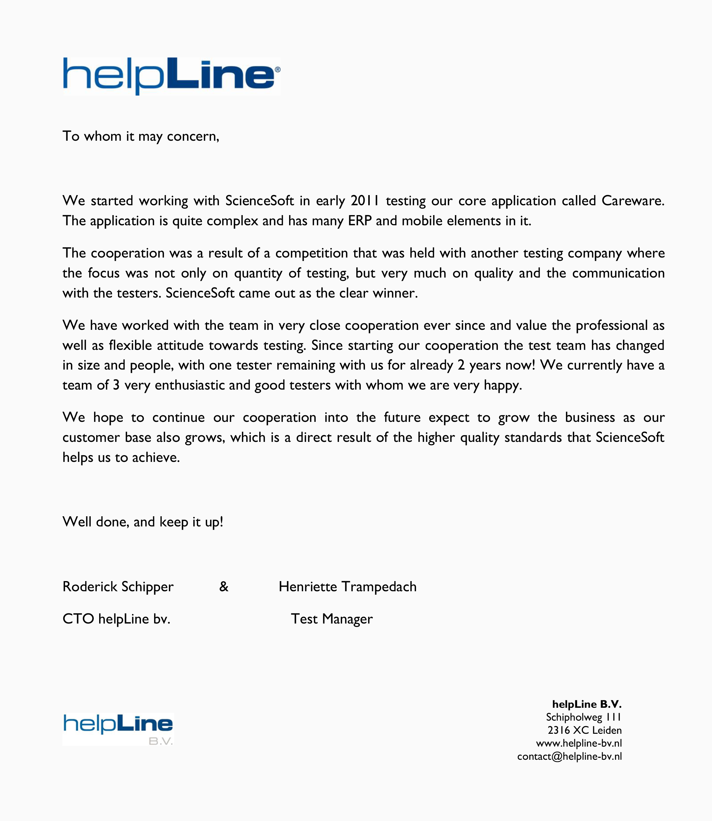 Seit den letzten 6 Jahren war ScienceSoft ein zuverlässiger Partner in den Sachen Support und Wartung unseres HR-Softwareprodukts.