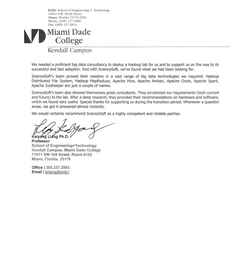 Das Team von ScienceSoft bewies seine Beherrschung einer Vielzahl von Big-Data-Technologien, die wir benötigten.